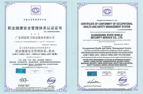 職業健康安全管理體系認證證書